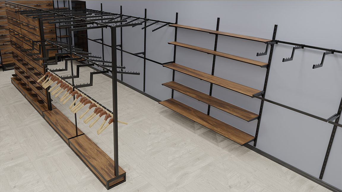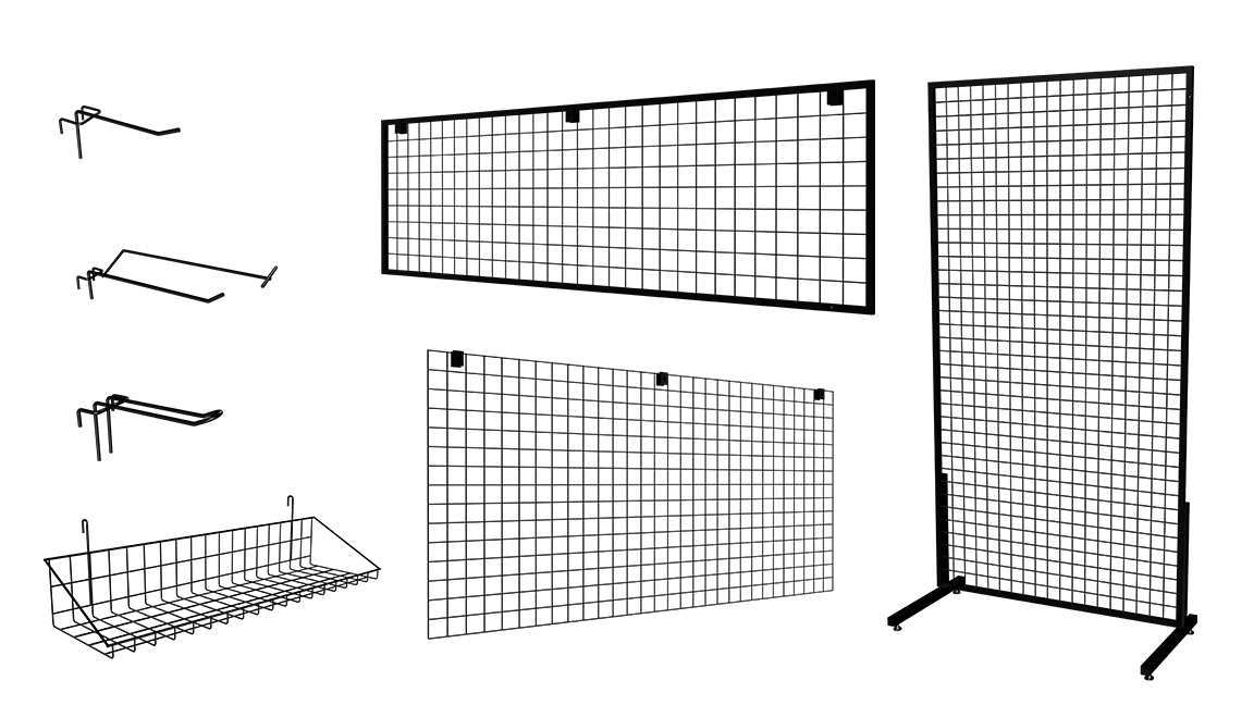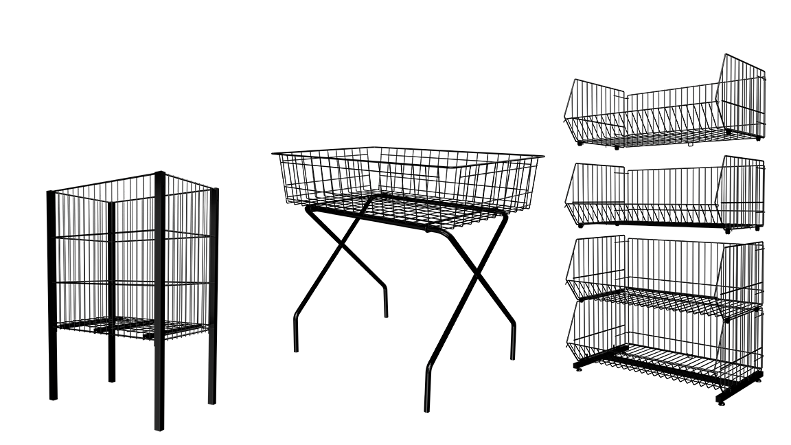 Основний напрямок – робота з дротом, профільною трубою, листовим металом та ДСП, що дозволяє нам виготовляти різноманітне обладнання у вигляді універсальних збірно-розбірних металевих каркасів для настінного, пристінного та острівного розташування з широким асортиментом комплектуючих, а також інші види комерційних меблів.